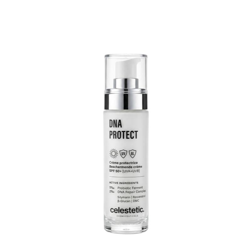 Afin de répondre à une problématique de peau récurrente chez les femmes comme chez les hommes nous avons créer la DNA Protect, cette crème de jour anti-âge et anti-imperfections répare et protège l'ADN de la peau des dégâts causés par les ultraviolets (UV) et autres facteurs environnementaux.