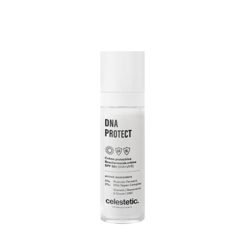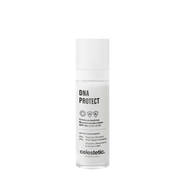 Afin de répondre à une problématique de peau récurrente chez les femmes comme chez les hommes nous avons créer la DNA Protect, cette crème de jour anti-âge et anti-imperfections répare et protège l'ADN de la peau des dégâts causés par les ultraviolets (UV) et autres facteurs environnementaux.